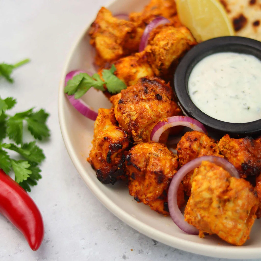 Allow time to marinade, then slide onto skewers, and cook in a tandoor oven, bbq or grill!