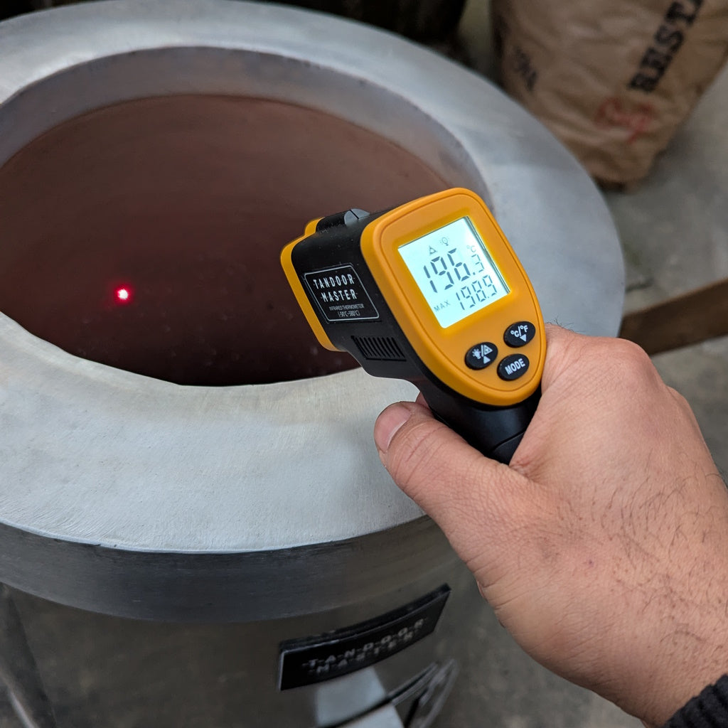 This laser thermometer is highly recommended to gauge the tandoor temperature, and essential to help get perfect naan bread, as only when clay walls are hot will you good restaurant quality naan.